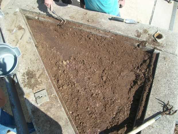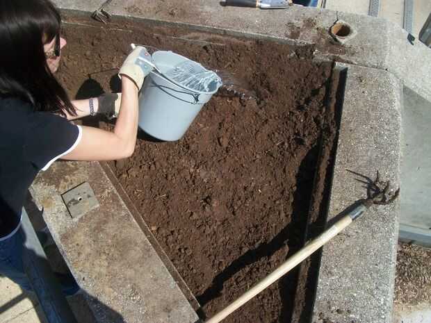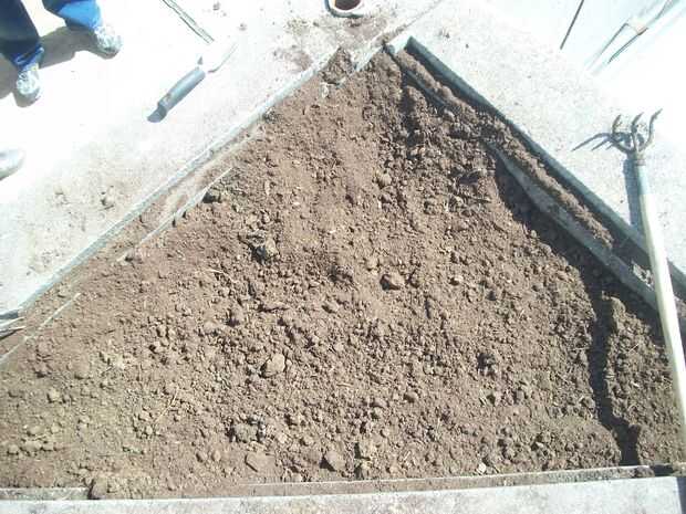 Mezclamos la turba en el suelo existente y luego el montón de agua. Qué personas no se dan cuenta es, que turba no tiene casi nutrientes de su propio. Puede ser utilizado como relleno, y eso es cómo lo usamos.