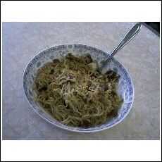 este plato de fideos me recuerda a algunos de los platos de tallarines en PF Changs. Su casi como cojín tailandés también pero no del todo. Le advertirá que es un poco picante. Si usted está cocinando para el kiddos puede reducir la salsa de ajo d
