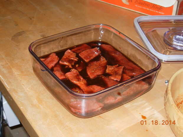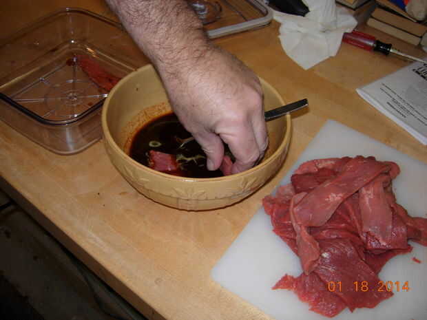 - Vierta el adobo sobrante sobre la carne. Trate de asegurarse de que todos los de la carne está cubierta.