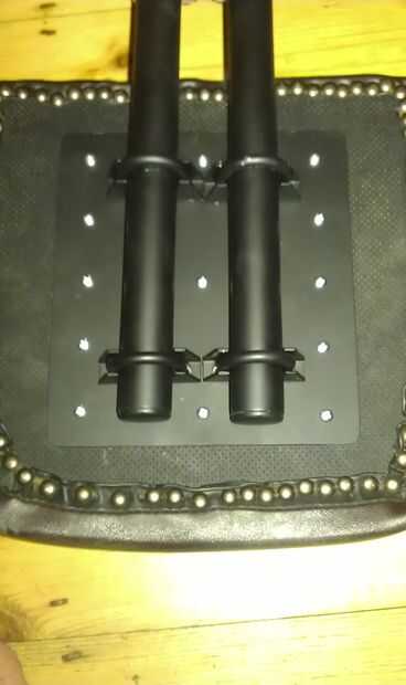 así todo muy bien equipado. Rociaron todas mate negro y agregó 'sillón pies extremos' como tapones. Va y apaga en unos 5 minutos, así que usamos sólo para viajes largos y su super fuerte... usted podría recoger la bici con él. Además, sólo algunas marcas en el cromo donde sujeta en. Su un poco feo y más dirigido, pero tenía que ser super fuerte y usted no puede realmente verla cuando en su uso y cargado con el engranaje.
