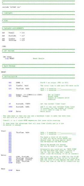 Al menos tiene los comentarios de código en glorioso technicolor. Si alguien quiere el archivo ASM luego me envía un correo aquí con su dirección de correo electrónico real y se FWD a usted.