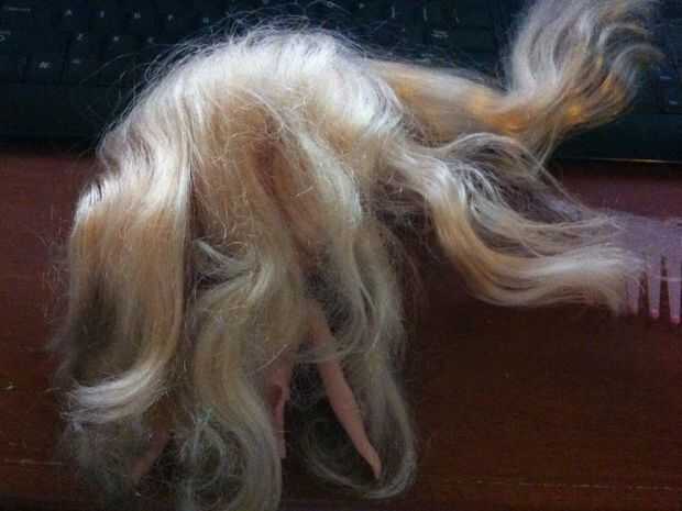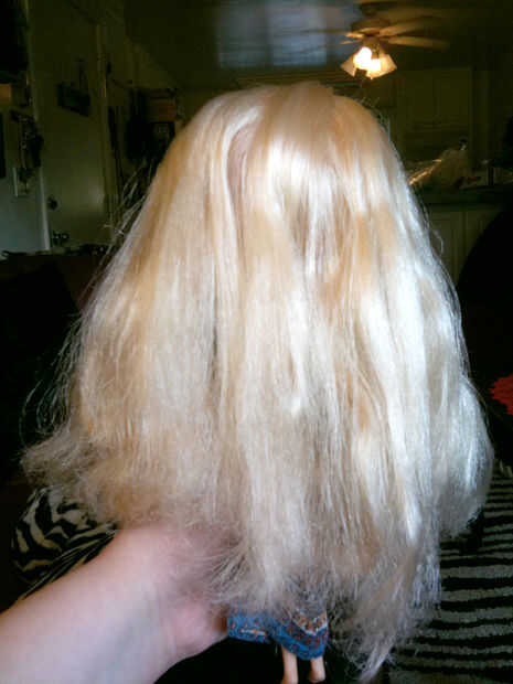 Una vez que vea la diferencia, usted se sorprenderá. Se puede repetir este proceso varias veces para llegar a lo que desea. Creo que lo hice 2 o 3 veces a mi muñeca. Si su cabello es tan enmarañado, puede que desee hacer un cepillo de antes, que usted verá en mi video.