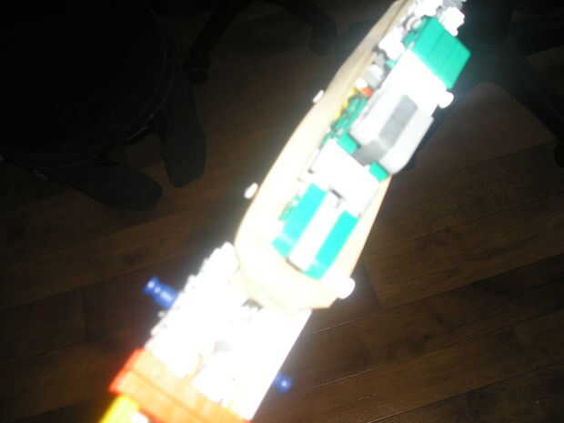 bien, Hola. Este es mi nuevo rifle de asalto. He hecho esto en unas 3 horas. Resultó mucho mejor de lo que esperaba. Dispara unos 40 pies pero tiene un muy buen disparador fuerte así que tal vez 50 pies. El bloque de disparo en el cañón funciona como
