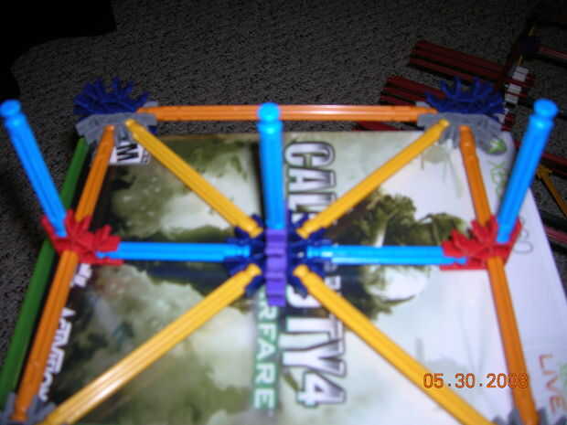 un soporte de controlador simple creado xbox 360 exactamente no es perfectamente, pero lleva a cabo.Paso 1: Construir el marco Primero necesitas:5 barras rojo1 barra gris2 conectores medio amarilloponer el int barras rojo el amarillo es dianagnal wiz
