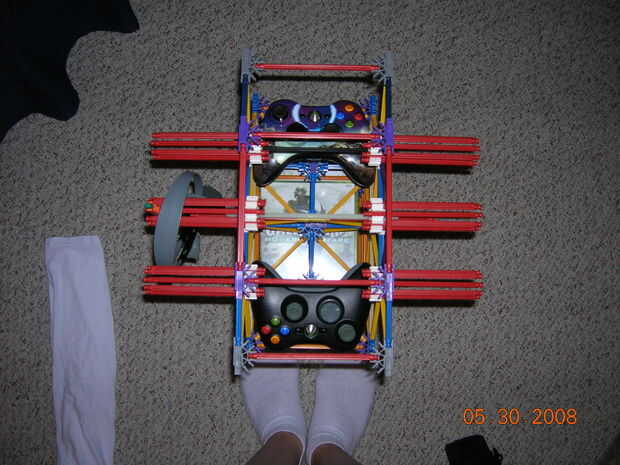 un soporte de controlador simple creado xbox 360 exactamente no es perfectamente, pero lleva a cabo.Paso 1: Construir el marco Primero necesitas:5 barras rojo1 barra gris2 conectores medio amarilloponer el int barras rojo el amarillo es dianagnal wiz