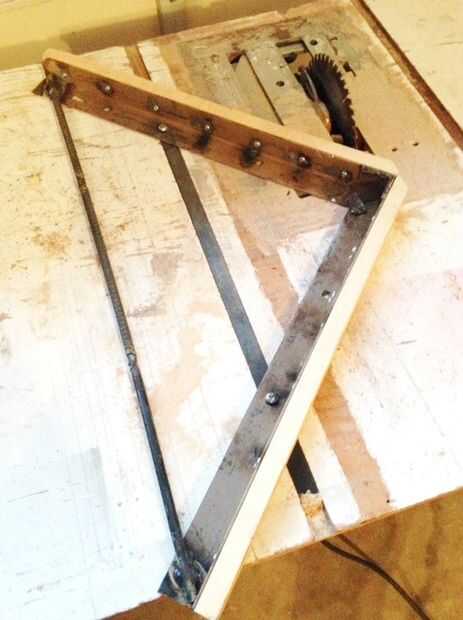 Más tarde hice un trineo de ingletes de la vieja cama estructura de acero y una barra de 1/4 "x 3/4" para adaptarse a la ranura de inglete. (cuarta foto) El acero no era recta o lo suficientemente uniforme para trabajo exacto, así que añadido que un revestimiento de pino de 1 x 2 sujeto con varios tornillos. Luego usé mi regular de ingletes ajustable para recortar y Plaza pinos frente a por lo que los bordes son rectos y verdaderos. Marco de la cama se une a la barra con los tornillos y hay espacio para el ajuste. Me tomé tiempo para ajustar el patín de inglete así puedo cortar dos piezas del mismo lado del trineo y todavía forman una esquina de 90 grados.