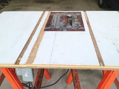 También tiene un brazo radial vio ahora. Una funcionalidad de una sierra radial del brazo es utilizando el borde de la mesa más cercana del operador como guía de corte con una regla afianzada con abrazadera a la parte inferior de la pieza de trabajo. Que describir este proceso en este Instructable. Tengo un trozo de aglomerado de 3/4 de pulgada a 4 pulgadas de ancho y 36 pulgadas de largo. Tiene los bordes muy rectos paralelos a ambos lados. Sujeta debajo de la pieza de madera contrachapada que se ve en la foto. Fue colocada a mitad de camino entre las dos ranuras en la tabla y paralelo a ellos. Todo lo que tenía que hacer era configurar la profundidad de las ranuras y sujete firmemente la madera sobre la mesa y corte una ranura y luego gire el extremo de madera contrachapada para el fin de cortar la segunda ranura. El proceso es casi a prueba de fallos y el producto final es muy exacto.