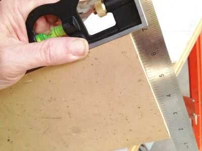 Ver la segunda foto. Si usted desea verificar su plaza para la exactitud, puede inviértala y ver si la pierna toca tan plenamente como lo hace en la primera fotola ranura del calibrador de inglete.