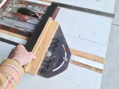 He planteado la pata larga de la Plaza de enmarcar un poco por lo que la otra pierna puede coger en la ranura del calibrador de inglete. He aflojado la tuerca de ala en el calibre de ingletes y permitido el calibre de ingletes girar hasta que su cara descanse sobre la pierna de la Plaza. Entonces apretó la tuerca de bloqueo.