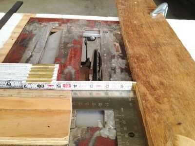 Traer la Plaza contra el calibre de ingletes. Deslice el ancho correcto del corte de rip. Sujete firmemente la plaza a la mesa con presión hacia abajo. Deslice la guía contra la escuadra. (Usar el filo de fábrica de una pieza de contrachapado. He hecho una nueva cerca superior de dos piezas de madera contrachapada y entonces se verá en un paso posterior. Pulsado la cerca de madera contrachapada en la parte delantera de la tabla y sujete cuidadosamente con una abrazadera de "C". Lo mismo en la parte trasera de la tabla. Revise otra vez para asegurarse la Plaza toca la valla uniformemente a lo largo de su longitud con sin espacios. Retire el calibrador de inglete y la Plaza. Si todo se hizo bien, no es necesario medir entre la hoja y la guía en la parte delantera y trasera de la hoja, pero es una buena comprobación para realizar, de todos modos. Haga una pequeña prueba. Ajuste la guía, si es necesario. En este Instructable desarrollé una manera confiable para ajustar la guía de corte sólo una pequeña fracción de una pulgada.