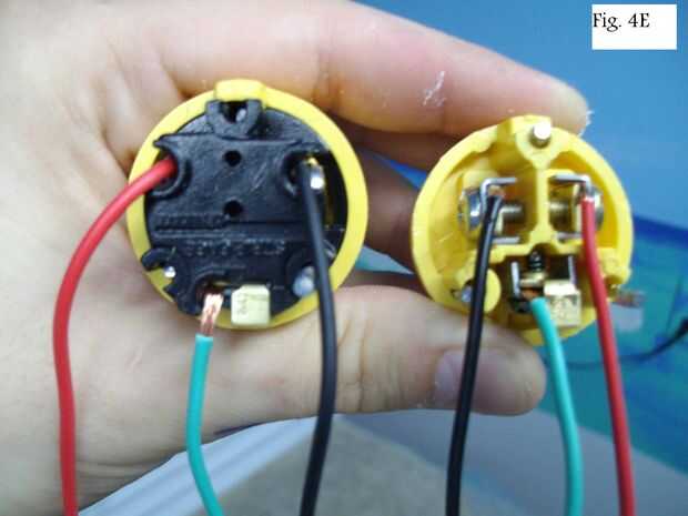 En la carcasa del foco fluorescente encontrarás el vivo y el neutro hilos que salen de la caja del balastro electrónico. El cable de tierra debe conectarse a una parte metálica de la cubierta (Figura 4) cuando usted está buscando en un tomacorriente de pared estándar de América del norte, el agujero neutral está a la izquierda, directo a la derecha y el suelo en la parte inferior. Esto debe tener en cuenta al conectar el enchufe y la toma de corriente. Tenga en cuenta que un enchufe y una toma de frente para que el vivo y los cables de neutro están en lados opuestos (figura 4E).