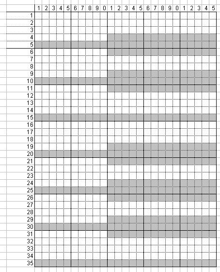 Fila # b - Color 1 - tejer en las plazas de patrón blanco, revés en los cuadrados oscuros