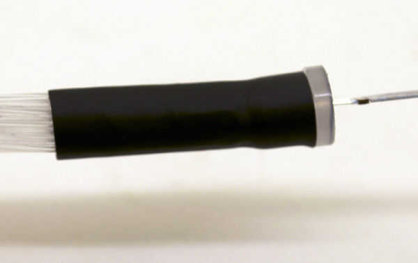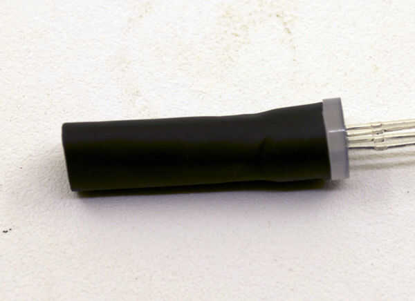-Del encogimiento del calor el tubo alrededor de las fibras y muy cuidadosamente alrededor el LED también.
