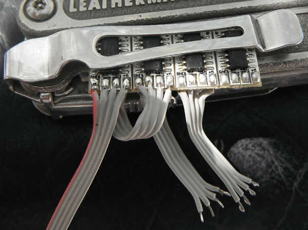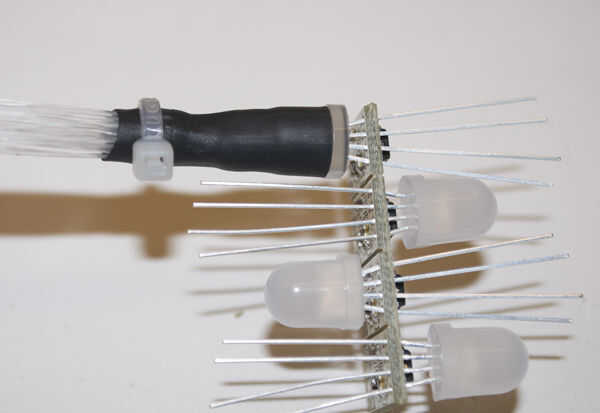 Ahora que tienes el TCL astillas encadenadas, con una toma de control de seis pulgadas, estamos listos para los LEDs. Montado mi LED alternando frente, espalda, frente, parte posterior; para hacer correr las fibras ópticas uniformemente un poco más fácil.