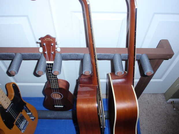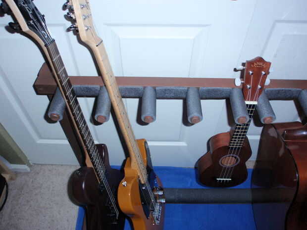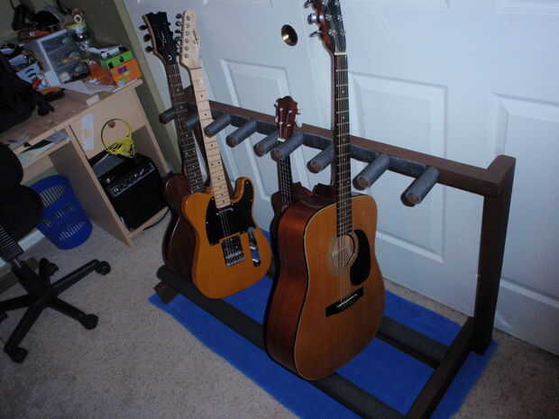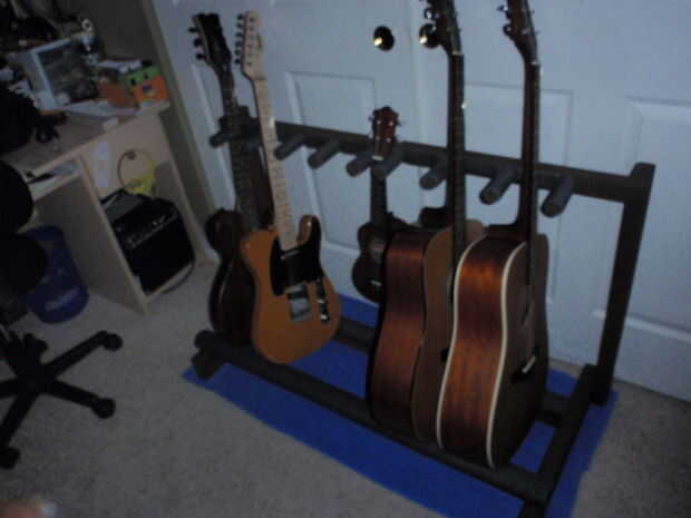 ¿Las guitarras más tienes, mejor juegas bien?Si sólo eso fuera cierto...En cualquier caso, tengo algunas guitarras y estaba cansado de tener múltiples soportes sobre y por todo el lugar. Así, un día decidí que haría un soporte de guitarra para consol