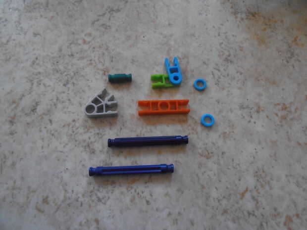 1. conseguir estas piezas y espaciadores de azul con una barras verdes