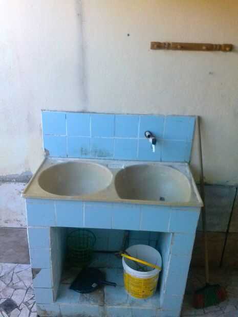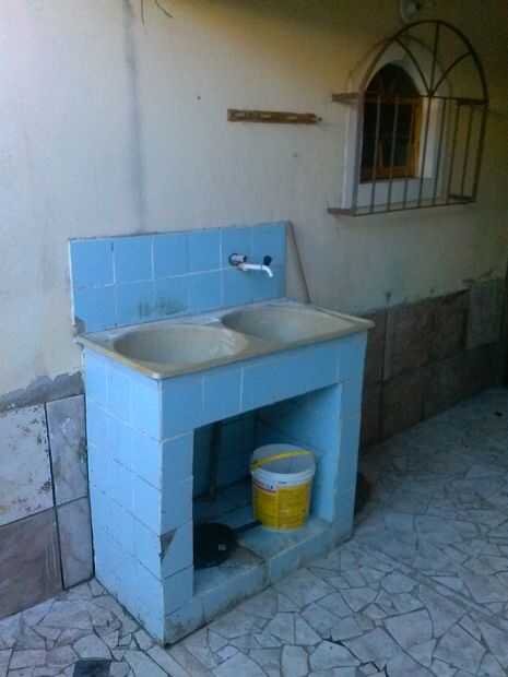 Mi suegro construyó este almacén de cemento enmarcado y fregadero adherida al lado de o a casa hace algunos años. Él también construyó ese techo de terracota que lo cubre. ("Obrigado Moacyr!") Es genial cuando tenemos personas alquiler de la casa, pero cuando visite a mi esposa y yo, mi suegra es una especie suficiente para ofrecer todos nuestros servicios de lavado de dinero, ("Obrigado Doña Helena!";-), dejándome con un lavabo de slop subutilizados y un espacio perfecto para una "oficina".
