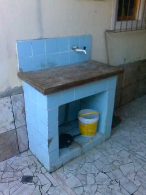 Lo que no hizo inservible para la mayoría de los trabajos (excepto lavadora) los fregaderos se encontraba ningún lugar para poner nada, excepto en el fregadero. Encontré una perfecta pieza de contrachapado sobrante de algún otro trabajo, y esto se convirtió en mi banco de trabajo. He añadido algunos pedazos de madera alrededor tres lados de chatarra como un marco, y tengo una mesa muy fácilmente desmontable que encaje de forma apretada sobre el fregadero de slop, creando un espacio de trabajo muy útil.