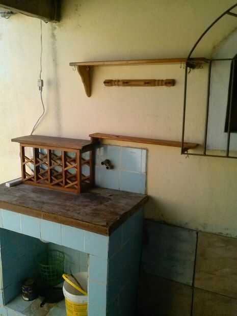 Toda la madera para este proyecto era cualquier desecho de otros proyectos o en la calle. Los estantes son parte de un viejo armario que sucumbieron a las termitas y el botellero fue encontrado al costado de un camino rural en un montón de basura.