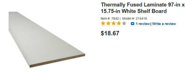 Lowes existencias 15 3/4" por 97" laminado de tableros ($18,67), que se cortan para usted.