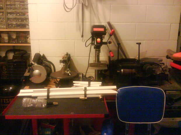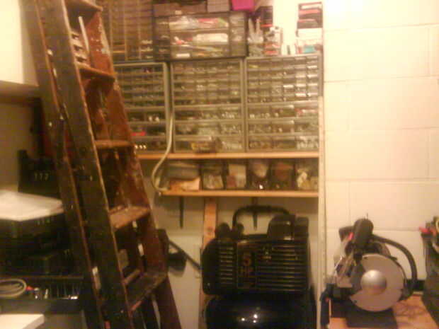 después de ser frustrado por no tener suficiente espacio para trabajar, no siendo capaces de encontrar las herramientas adecuadas y suministros y pasar demasiado tiempo buscando cosas, decidimos limpiar un cuarto del sótano y construir un taller. Apr