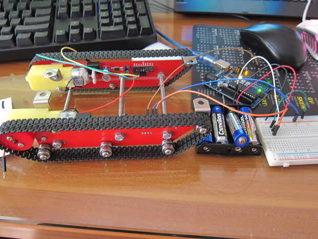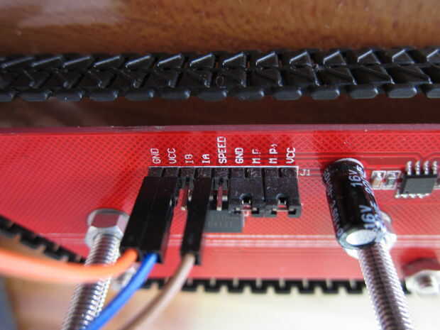 Conectar IA en el lado izquierdo a Arduino pin 8 y VCC a + de la caja de batería. TIERRA está conectado a ambos - de la caja de la batería y Arduino GND. Download el código de colegas de elab y probarlo... Se mueve hacia adelante. Después de que pruebo IB y se mueve hacia atrás. Pruebo otra vez en los otros lados y averiguar cómo controlar la dirección como sigue: