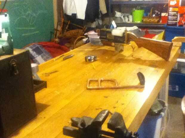 Es donde se realiza la mayor parte de mi trabajo tiene un vicio en la bruja de la esquina derecha es ahora donde hago la mayor parte de mi corte y perforación detrás de eso es una caja de herramientas de maquinistas de 1920