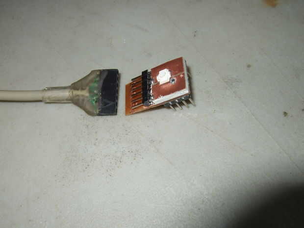 Para conexiones no estándar, una solución más simple puede ser más deseable. Aquí es un simple programación "sombrero." Tiene 0.5" espaciado, así que se desliza sobre un estándar IC estrecho de DIP. Tiene punto a punto con cable, entonces cubierto con escultura en epoxi. Puede dejar en el protoboard, si no te importa dar el espacio extra. Luego sólo Conecte el cable de programación cuando sea necesario.