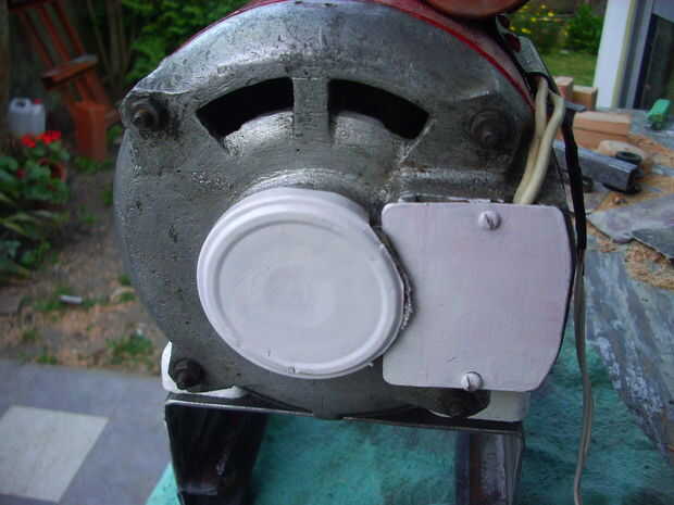 Así levanté la tapa de chapa, vi estaba con todo y motor, lo conecté a 220V y ¡aleluya! funcionaba perfectamente. Por supuesto, tenía tanta mugre encima daba pena. Me puse a restaurarlo, lo hice revisar por un experto que me confirmó los rodamientos sin dentado necesitaban, lo limpié lo mejor pude, le lavé los rulemanes los engrasé, le agregué una tapita protectora para retener la grasa, le cambié algunos tornillos, y para terminar le di dos o tres manos de pintura. No sé qué potencia tiene porque perdió la chapita con las especificaciones, pero por el peso calculo es de 3/4 o 1 HP