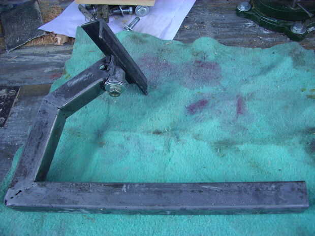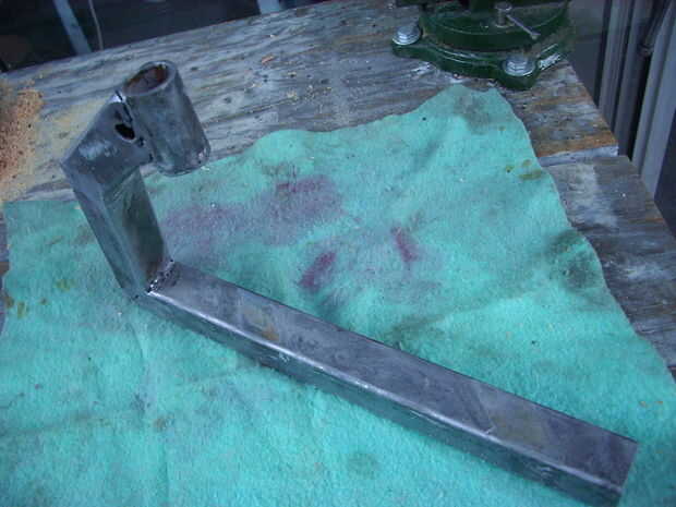 Para hacer el soporte para herramientas, o más bien el apoyo de la herramienta, ya que el torno será principalmente para madera, usé una pieza cuadrada de la pipa del hierro que encontré en el garaje, de un trabajo anterior. Al principio dio una forma cerrada de L, pero luego me di cuenta que resultaría difícil girando alrededor del centro de rotación, así que añadido un codo, que la L era cerca de cierta forma C. En la primera versión, hice agujeros 90% cruzado en su parte superior, así puedo tornillo de soporte de la herramienta en paralelo o perpendicular al eje de rotación. Más tarde decidí reemplazar el par de agujeros con una pieza vertical de la tubería, permítanme rápidamente a cualquier ángulo entre 0 y 180 grados el resto de la herramienta. Los agujeros sigue siendo parcialmente, como recuerdos de su pasado evolutivo.