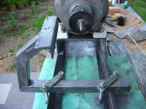 Vino ahora los mecanismos de desplazamiento longitudinal y transversal, que en el primer torno tenía demasiado trabajo. Recuerda el principio KISS (mantener Simple, estúpido) y decidió no complicar mi vida. Por lo que simplemente hice dos corchetes cuadrados iguales, cada uno con dos tuercas fije un trozo de chapa de hierro, como un agarre del tornillo de banco, suficientemente robusto como para evitar el riesgo de error si la herramienta es clavada a la pieza de giro, que pasa cuando uno no sabe que para hacer el trabajo. Estos soportes permiten ambos movimientos (longitudinal y transversal), y todo lo que tengo que hacer es aflojar las cuatro tuercas, reubicar el resto de la herramienta y vuelva a apretar las tuercas. Tal vez más adelante voy a hacer un mecanismo de palanca que todo lo reduce a un único movimiento, pero lo haré sólo si la relación de trabajo y beneficios es muy buena.