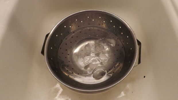 2. Mientras se está calentando el agua, preparar un tazón de agua helada (un baño de hielo) para colocar los camarones el momento que salen de la estufa. Desea detener el proceso de cocción lo antes posible una vez se hacen hirviendo.