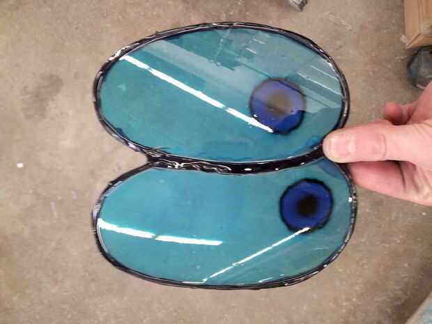 Para los ojos puedes utilizan cualquier tipo de plástico curvado... usé algunos de un conjunto de faros que tengo en mi trabajo... trabajo en una tienda de cuerpo auto por lo que fueron sustituidos. teñido algunas claro un toque de azul... costura sellados los bordes y aerografiado algunos ojos torcidos locos!!!! luego pegado al frente y cortar la tela para que pueda ver a los ojos!
