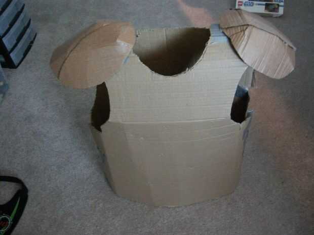 Hice un disfraz de Halloween de Jefe Maestro de Halo 3 completo para mi hijo de cartón y fibra de vidrio. Empecé con el casco. Aquí están los pasos que he seguido. Una pequeña figura de acción y las imágenes encontradas internet fueron utilizados com