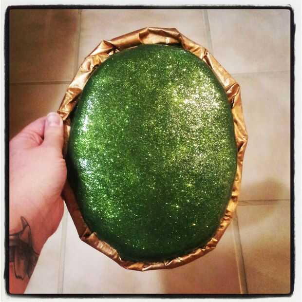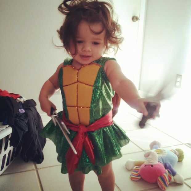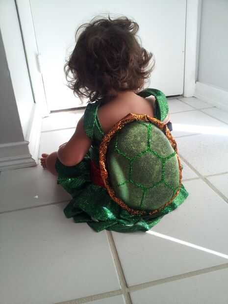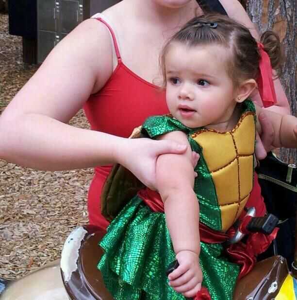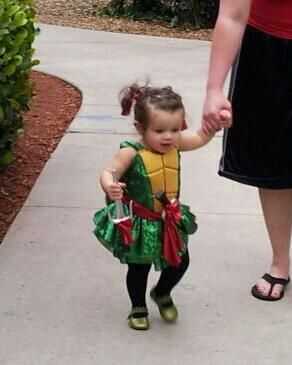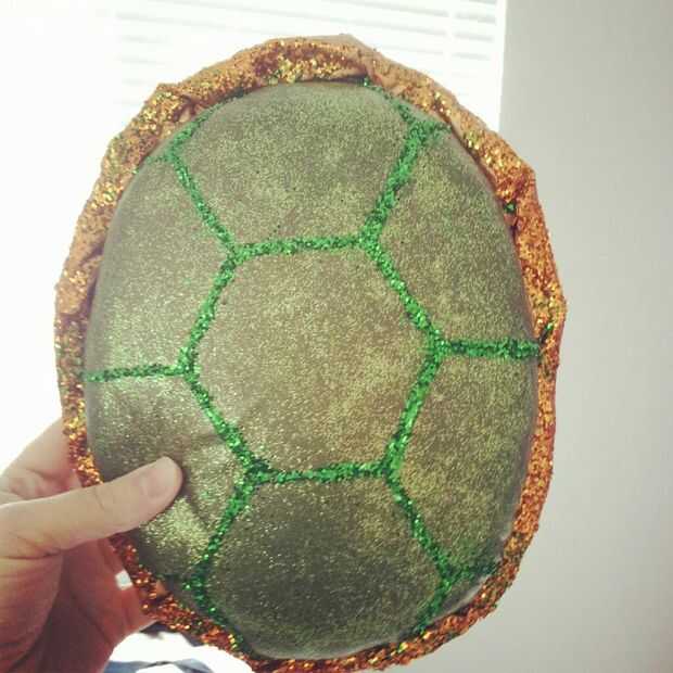 Varios viajes a telas de JoAnn, uso de medios acrílico de Jerry Artarama, brillo y pintura de tela y nació mi sparkley TMNT (niño mutante Ninja tortuga)! Yo espero que les guste tanto como yo creándolo! Stinker poco no podía recibir más de cuánto ella brillaba y demostró a menudo su agradecimiento por tratar de sacar mis ojos con su arma ninja de brillo. En retrospectiva su padre puede no tener tanto decir en traje del año que viene...
