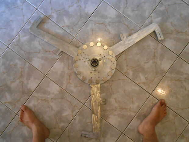http://www.vawt.tkTenga en cuenta que este es más fácil de construir que mi Savonius.mantenía muy básico.para construir la turbina, es necesario el siguiente material:-3 bicicletas de ruedas de 29" $5,00-suelo de lamminate 12 $20,00 (25 "x 8&quo
