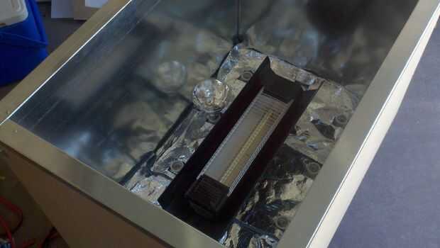 Los paneles aislados son paneles de chapa de calibre 24. Están compuestas por dos cuadrados "ollas" que tienen un manto de una pulgada de aislamiento entre ellos. Los recipientes eran entonces clavó juntos. Uno de los recipientes tiene un borde más largo en la parte superior donde formé una channle para enganchar a la parte de madera. Soy un trabajador del metal de hoja de oficio por lo que he hecho paneles similares antes, y tengo fácil acceso a los materiales gratis. Si no tengo acceso al metal podía haber sólo usé la Manta aislante, que tenía un lado de la hoja, y papel de aluminio con cinta directamente a la madera. Desde el fondo de la caja no está expuesto a tanta calor me conformé con usando el material de aislamiento para cubrirlo. Los paneles han funcionado extraordinariamente bien. Es absolutamente no notable subida de la temperatura en el exterior de la caja o en la superficie interna de la madera, aunque el interior llega a 450 grados.
