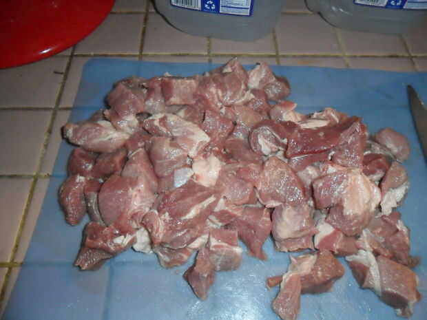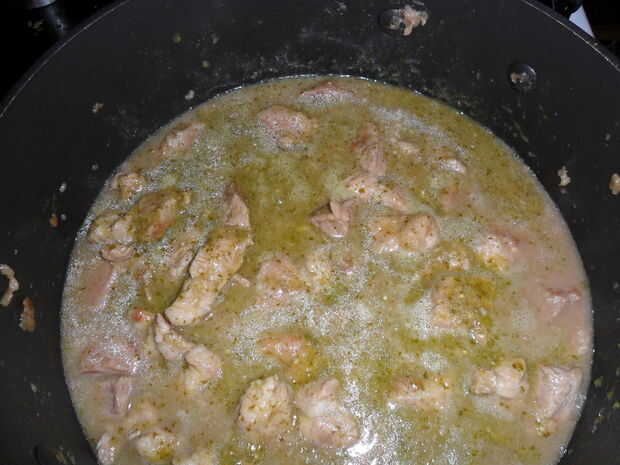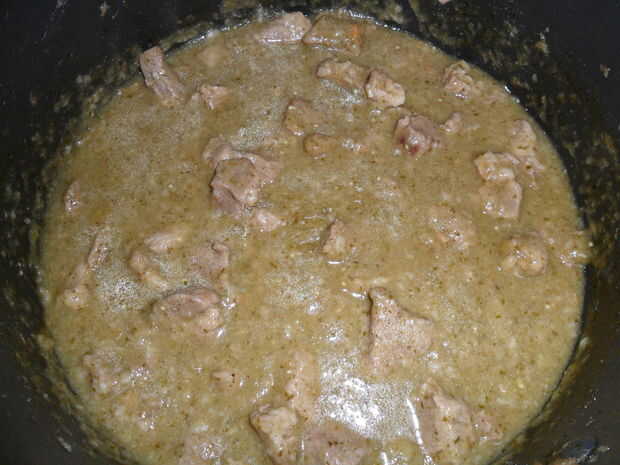 Bien así que si usted quiere hacer esta salsa en un estofado picante, calentar tu olla olla con suficiente aceite para cubrir la parte inferior. Trocear el lacón en dados. Ligeramente, cubra el cerdo con harina y sacudir el exceso. Una vez que el aceite esté caliente, añadir el cerdo. Cocine hasta que la carne es de color marrón. Añadir alrededor de 1 1/2 tazas de caldo de pollo. Revolver. Añadir la salsa de chile verde, y mezcle todo. Cubra y deje a esta cocción durante unos 30 minutos a fuego medio bajo.