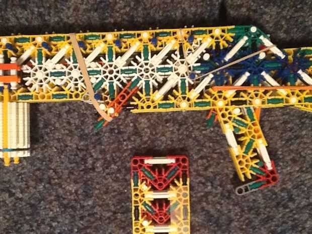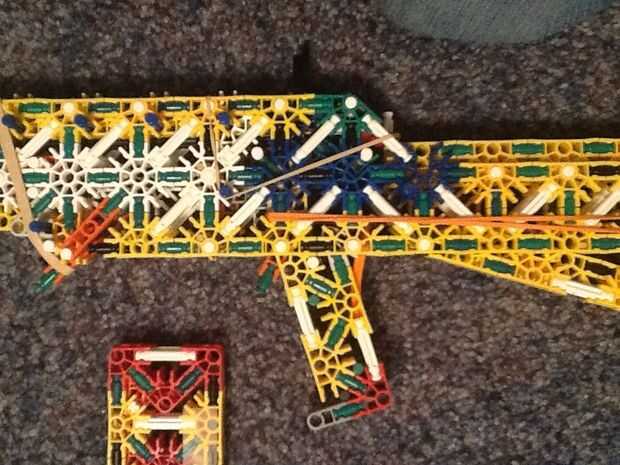 esta es mi versión de "El confiable" (R3) originalmente producido por el libro rojo del oeste. Tengo que decir que el título coincida con la pistola, excepto para la revista siempre cayendo hacia fuera. Así que para solucionar esto, he añadido una cerradura revista en él en la foto #4. Otra desventaja era que la revista no es capaz de precarga. No tengo una foto de eso pero he implementado. Otra lo malo es que utiliza varias piezas de corte rota. He quitado todos y construido reemplazos. También he añadido puntos de interés personalizados. Buscar en la sexta foto y aviso donde he colocado la fila de conectores amarillos, está más arriba que originalmente. Tienen una acción completamente diferente y manejar. He ampliado la culata y el cañón extendido. También he añadido un foregrip.