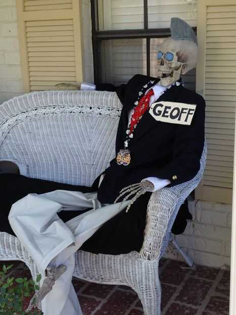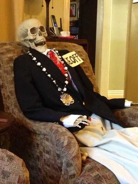Para vestirlo usé Mardi Gras bolas, lazo de Toy Story de mi esposo y capa de deporte de mi hijo y los pantalones.
