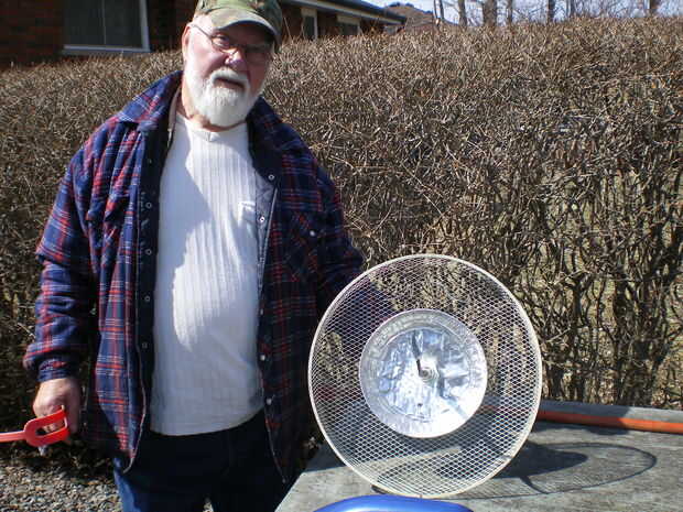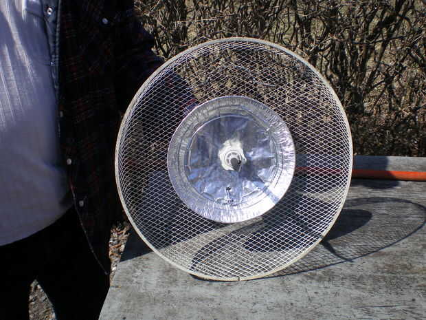 Fue cortado un agujero redondo en el centro de la tartera de aluminio que esto permitiría fijar a la rejilla del ventilador.