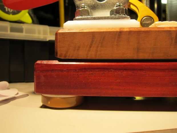 La última foto muestra pino. Fácilmente podría utilizar pino barato para hacer esto y use tuercas de mariposa en el lugar de los botones de plástico para mantener el costo bajo.
