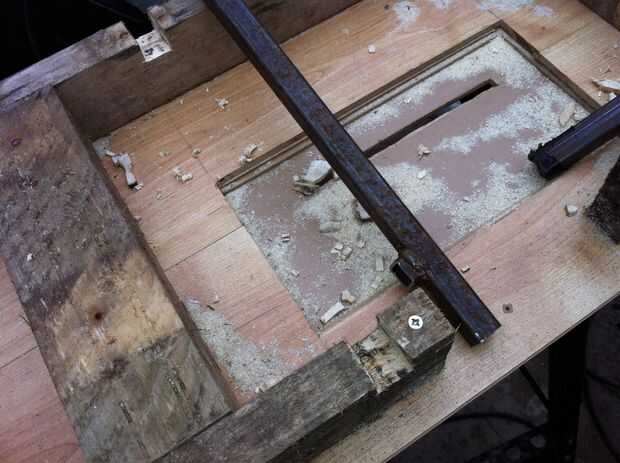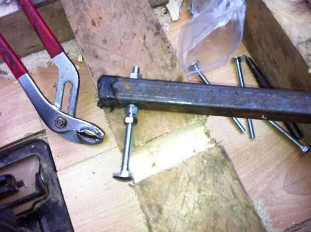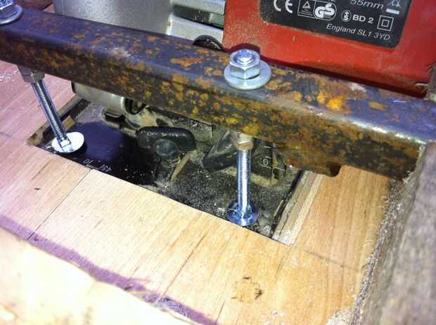 Quedaba sujetar y fijar la sierra en su lugar. Los pernos de carruaje estaban equipados con tuercas y tuercas nyloc como no lo quiero vibrar suelta. Como el laminado es tan delgado es importante para no sujetar la sierra como arcos de la cara de la tabla. Cuando esta sierra para uso futuro de la reanudación y con todo mi taller instalaciones funcionará un pice de sttel placa en las láminas para proporcionar rigidez extra. Por ahora con tiempo y recursos en mi contra, esto funciona muy bien.