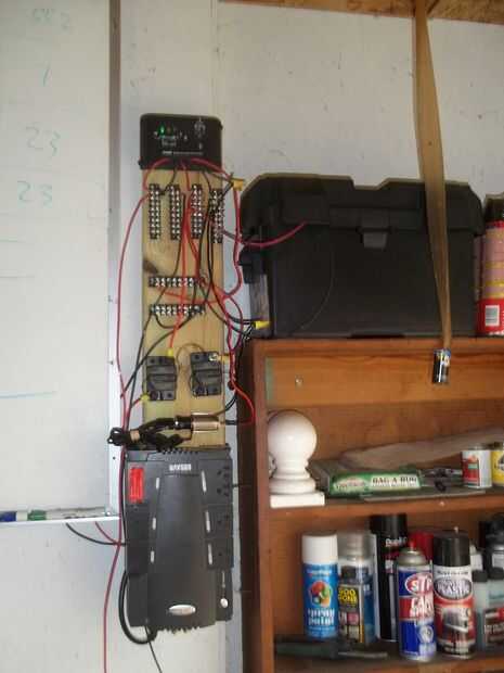 Actualización 23/08/2013---no he añadido una nueva foto, pero he añadido una segunda batería en paralelo a la de la foto. También encontré un lugar que podía perforar un agujero de mi garage en mi sótano. Ahora tengo un cable de corriente de la unidad de UPS en mi sótano para que pueda utilizar el poder dentro de la casa, así como en el garaje. Estoy en el proceso de reconfiguración de este sistema en una bolsa de almacenamiento de información para que si tenía que puedo tomar mi poder conmigo.