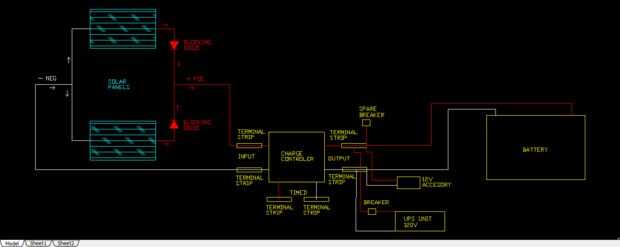 4. el terminal 2 tiras de la derecha son las salidas positivas y negativas desde el controlador de carga. También la conexión de 12v de la batería y otras conexiones de dispositivo que necesitan la energía de 12v. Cuando el controlador de carga es hacer salir la energía para estas tiras que el poder irá a todos los dispositivos que actualmente requieren energía, la energía restante irá a o de la batería según sea necesario.