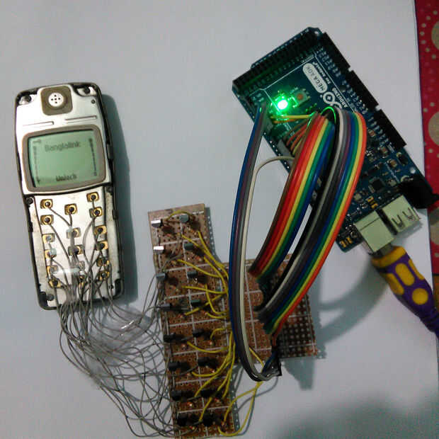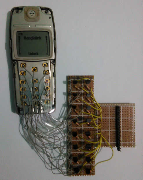 Después de hacer el tablero ahora Conecte con cuidado cable de teclado de teléfono con los colectores de los transistores. No añadir ninguna resistencia entre el colector del transistor y teclado cable porque según esquema de teléfono un resistor está conectado internamente con el conector de señal de teclado.