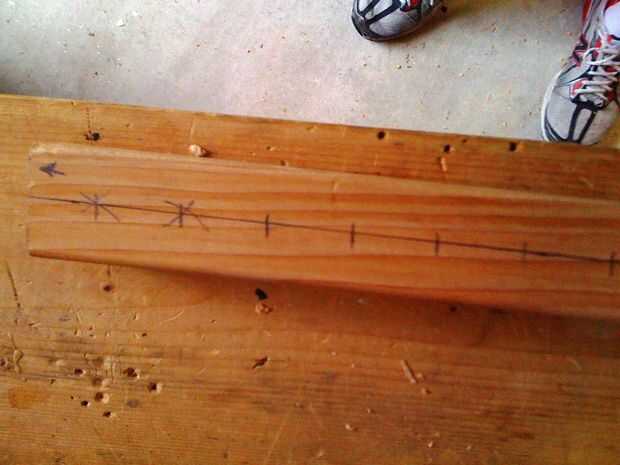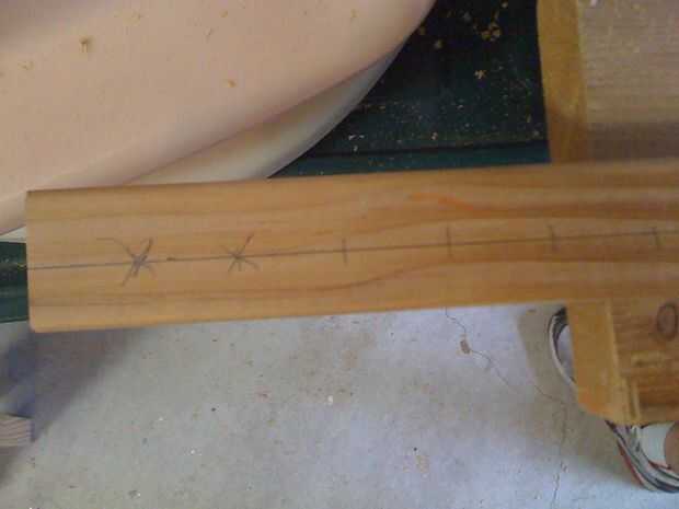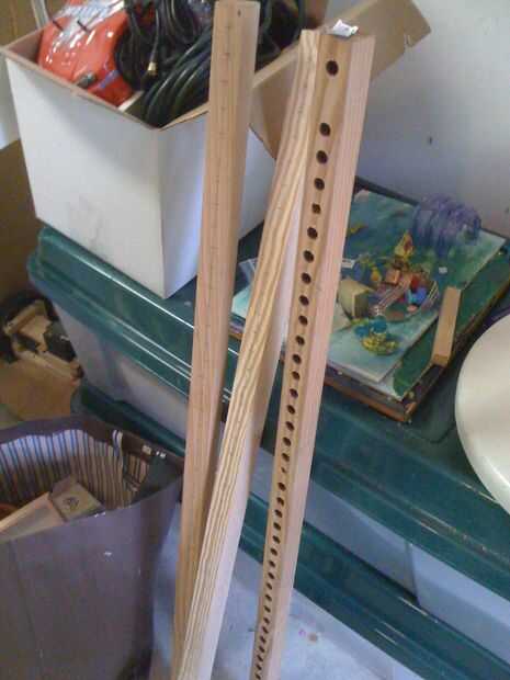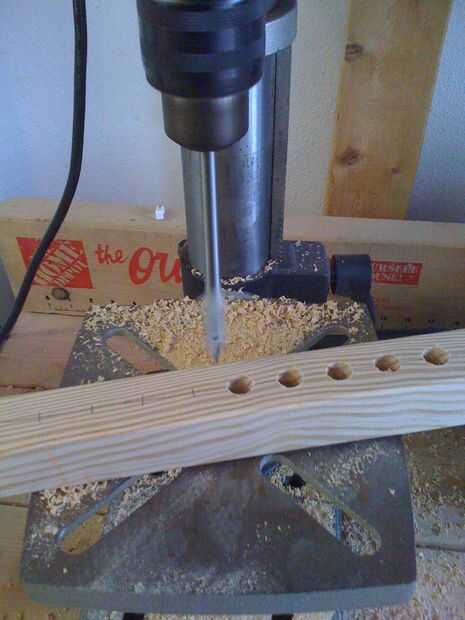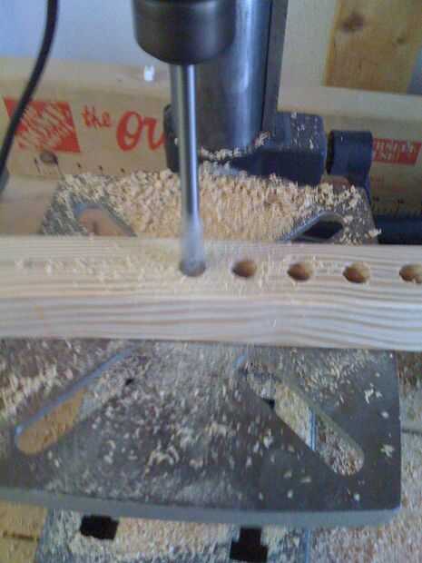 Esta es la primera modificación de las instrucciones originales como referencia. En lugar de sólo perforar unos que decidí hacer un agujero cada pulgada, con la excepción de los extremos, he dejado las últimas 2 pulgadas sin perforación debido a las clavijas (mirar las fotos). Perforé con la 1/2" broca.
