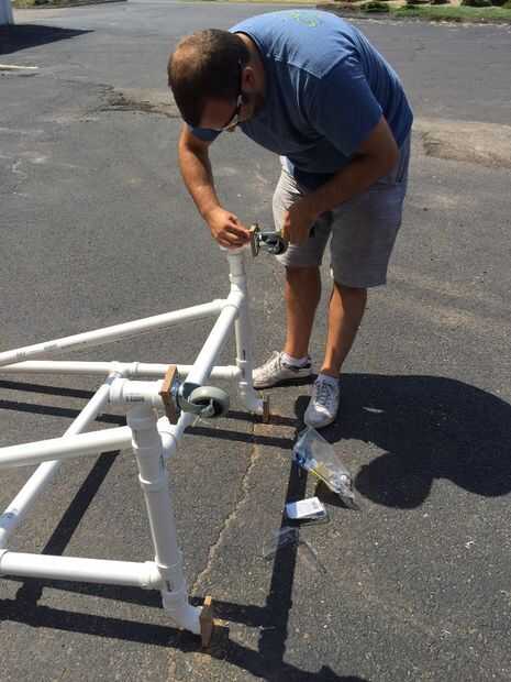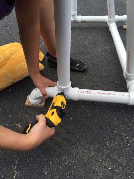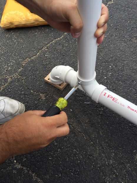 Después de montar todo, ejecuto el taladro y poner un agujero a través de la conexión y la tubería en cada punto de conexión. Sería bueno tener un amigo ayudarle, si cualquier medición era un poco apagado, puede que necesite alguien que junte la conexión mientras perfore y añadir los tornillos de metal.