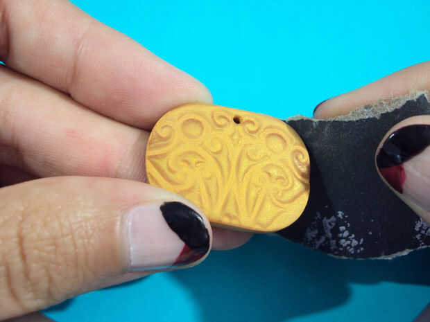320 - más grueso. Después de lijar el polímero de arcilla se verá opaca y el efecto de cambio de mica será menos notable. No te desesperes, es normal.
