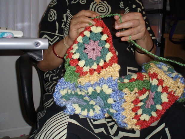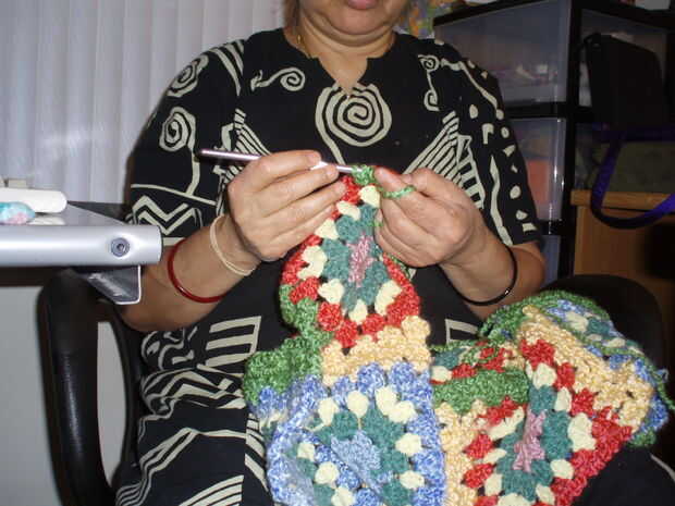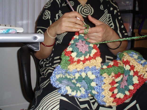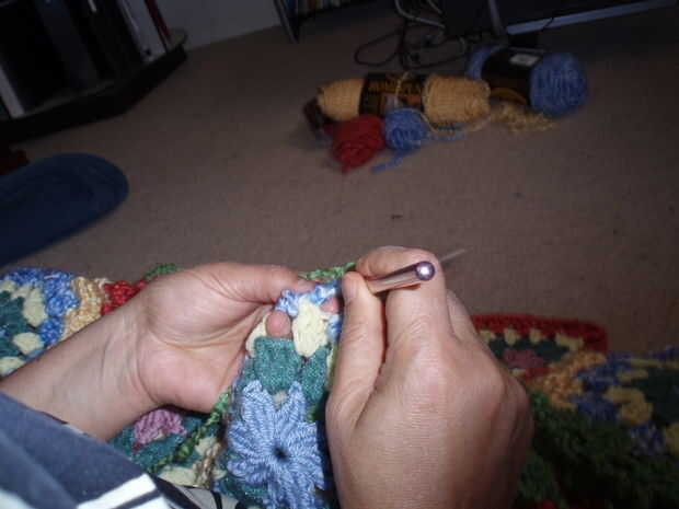 mi sobrina, Justine, suplicó que le haga un afgano. Le encanta acurrucarse en otros afganos he hecho y dicho, "Tía, nunca me has hecho nada!" Ella y su familia han mudado recientemente inicio a TC de California y ella siempre está congelando! En